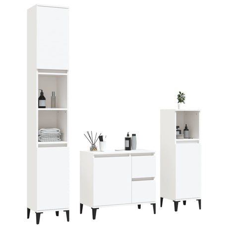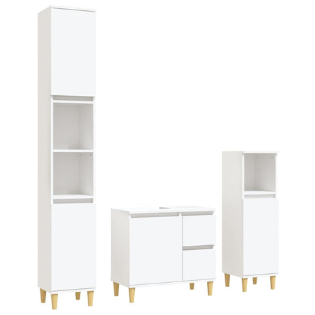 3 Piece Bathroom Cabinet Set White Engineered Wood