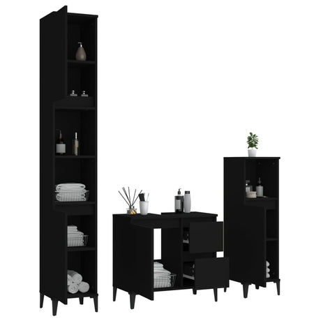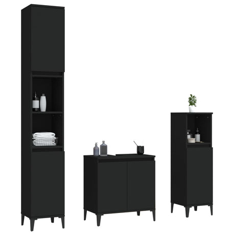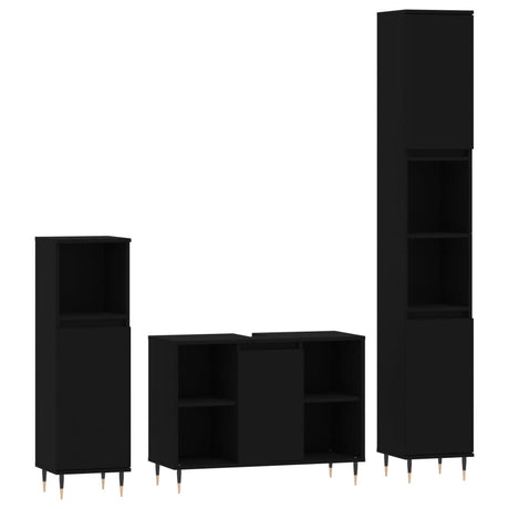 3 Piece Bathroom Cabinet Set Black Engineered Wood