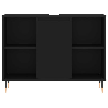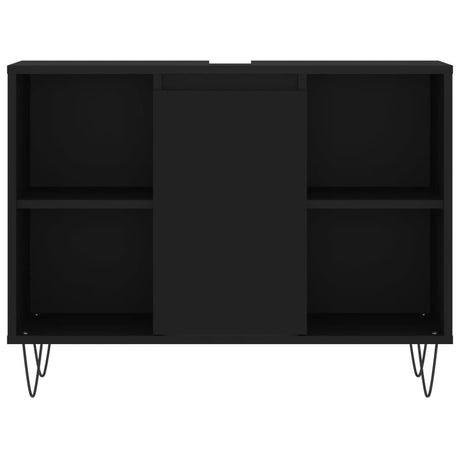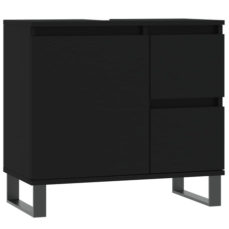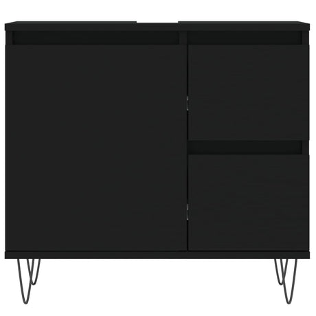 3 Piece Bathroom Furniture Set Black Engineered Wood