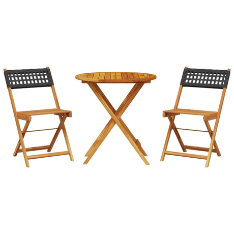 3 Piece Bistro Set Black Poly Rattan and Solid Wood Acacia
