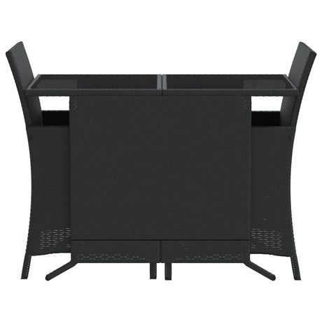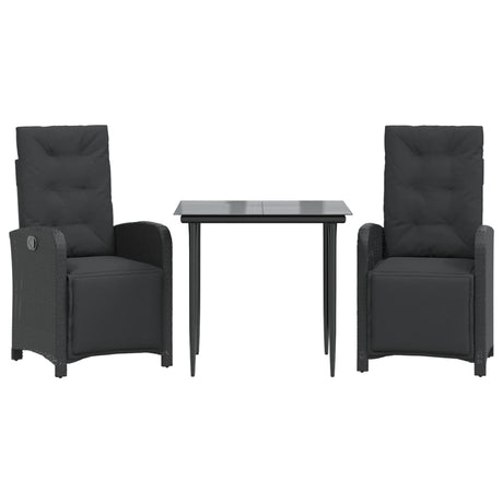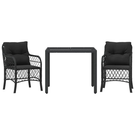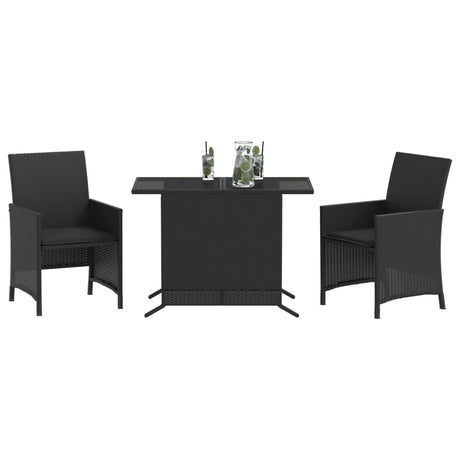 3 Piece Bistro Set with Cushions Black Poly Rattan and Glass