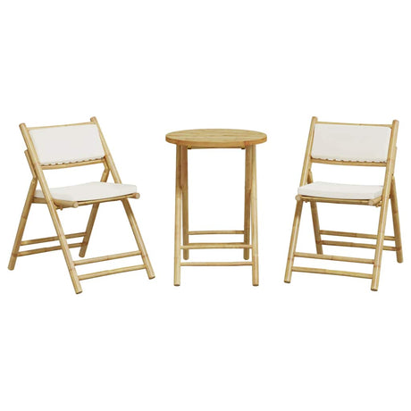 3 Piece Folding Bistro Set with Cream White Cushions Bamboo