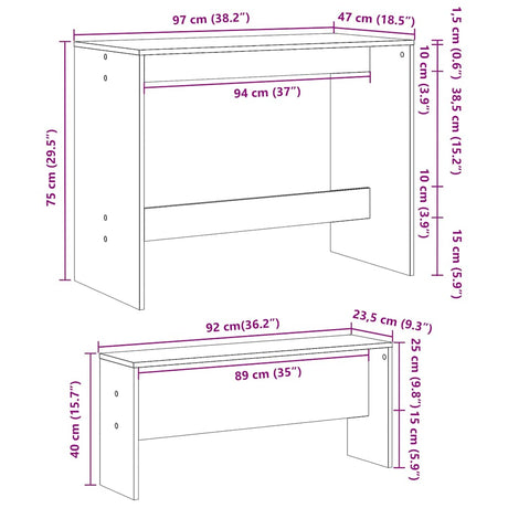 3 Piece Dining Table and Bench Set Black Engineered Wood