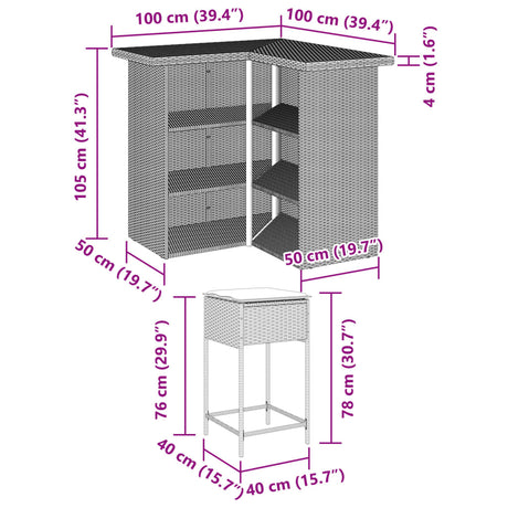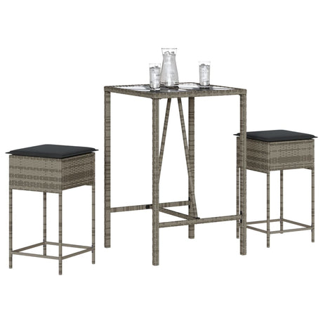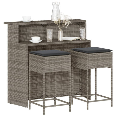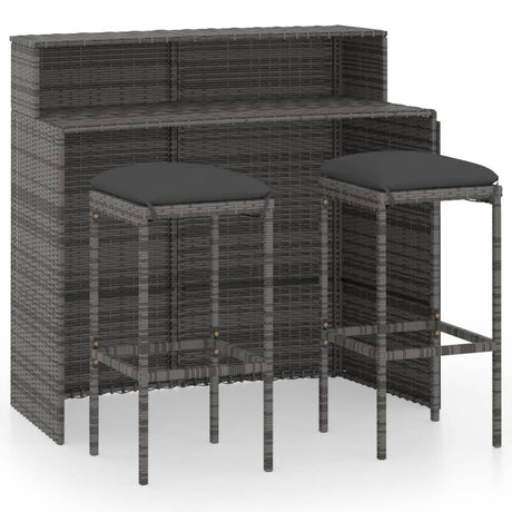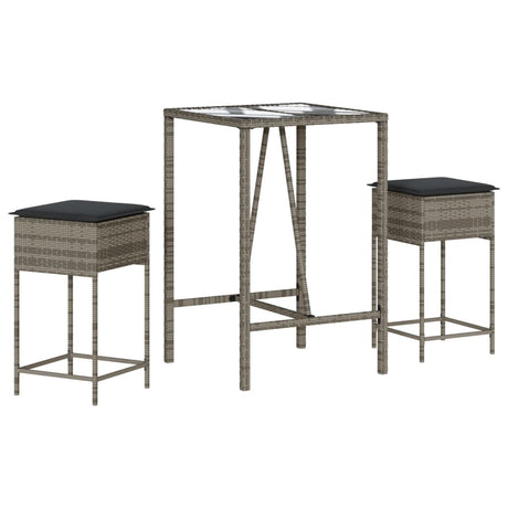 3 Piece Garden Bar Set with Cushions Grey Poly Rattan