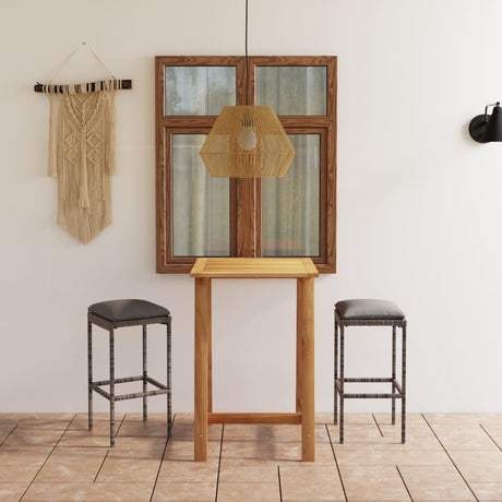 3 Piece Garden Bar Set with Cushions Grey
