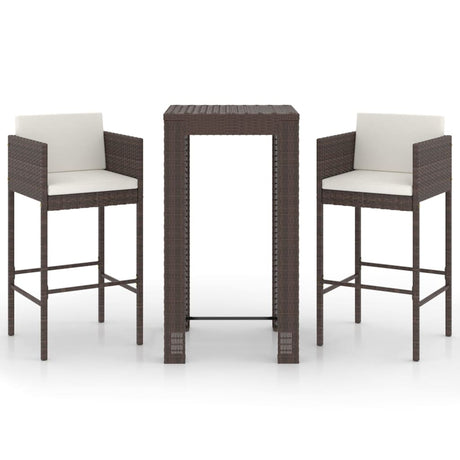 3 Piece Garden Bar Set with Cushions Brown