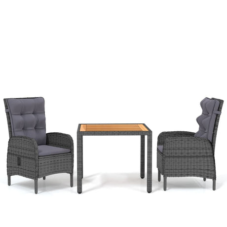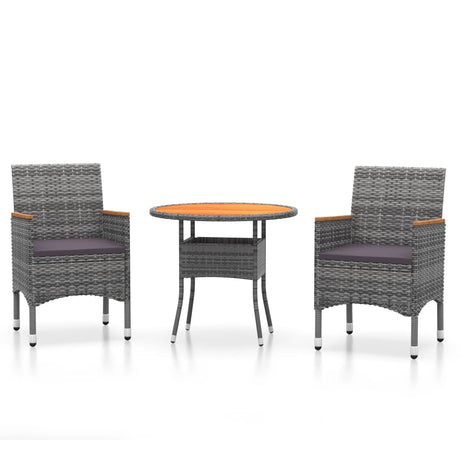 3 Piece Garden Dining Set Solid Acacia Wood & Poly Rattan Anthracite
