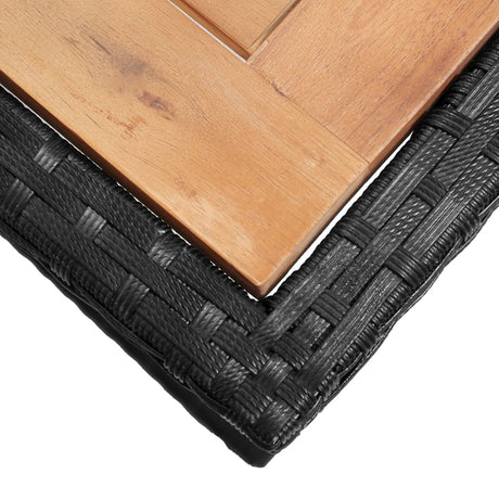 3 Piece Garden Dining Set Solid Acacia Wood & Poly Rattan Black