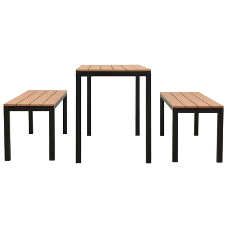 3 Piece Garden Dining Set Steel and WPC Brown and Black
