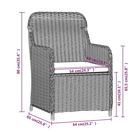 3 Piece Garden Dining Set with Cushions Brown and Black