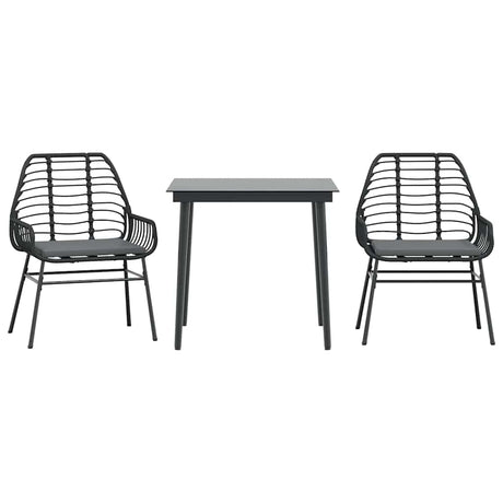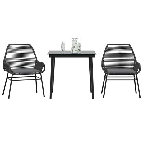 3 Piece Garden Dining Set with Cushions Black Poly Rattan and Steel