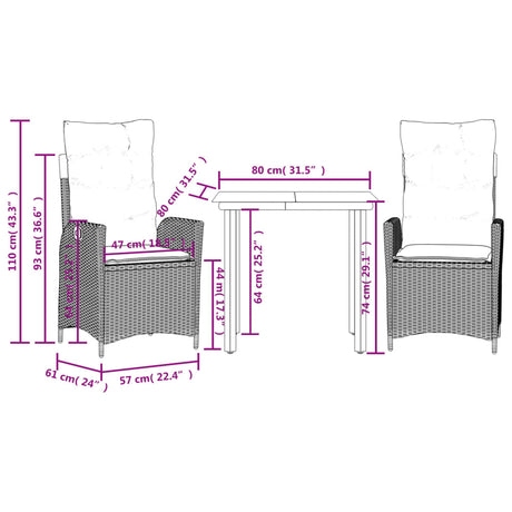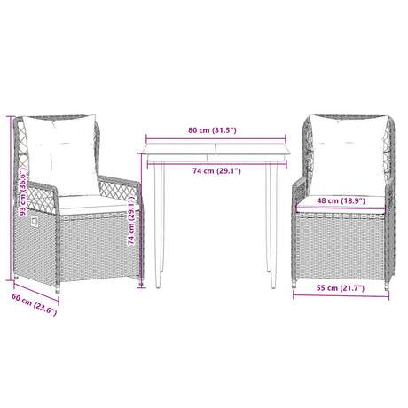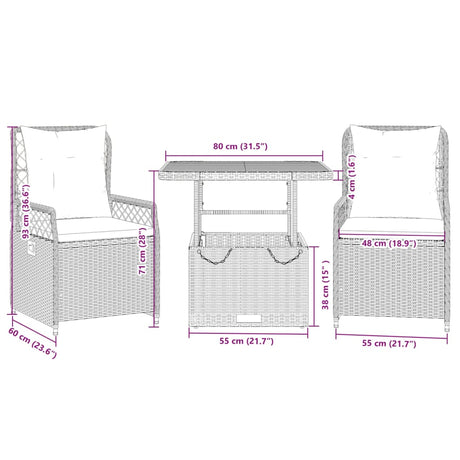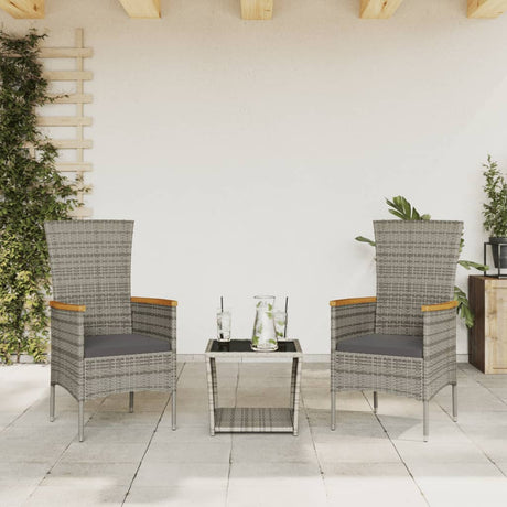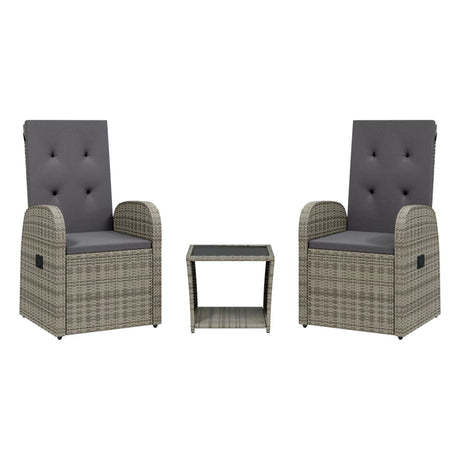 3 Piece Garden Dining Set with Cushions Grey and Black