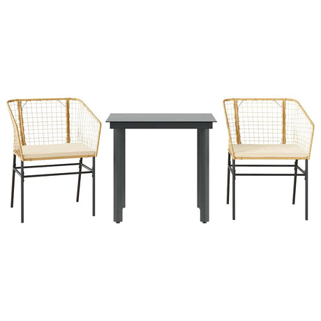 3 Piece Garden Dining Set with Cushions Brown Poly Rattan Glass