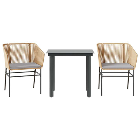 3 piece Garden Dining Set with Cushions Brown PP Rattan