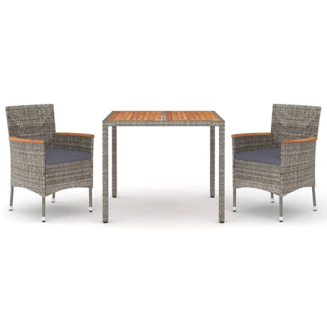 3 Piece Garden Dining Set with Cushions Grey Poly Rattan