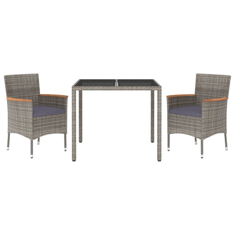 3 Piece Garden Dining Set with Cushions Grey Poly Rattan Glass