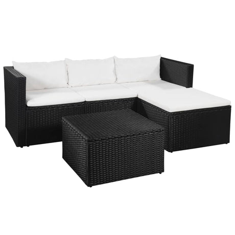 3 Piece Garden Lounge Set Poly Rattan Black and White