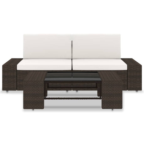 3 Piece Garden Lounge Set Poly Rattan Brown