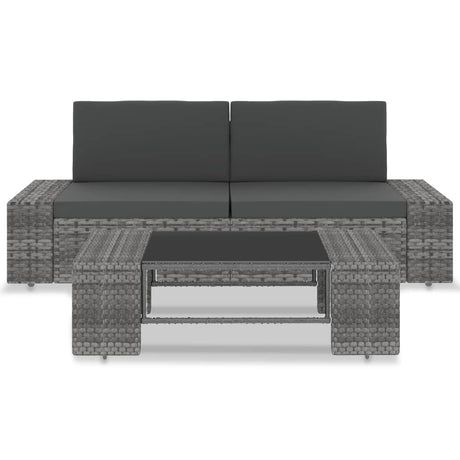 3 Piece Garden Lounge Set Poly Rattan Grey