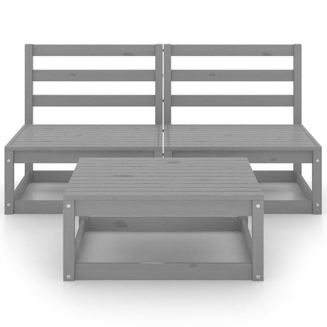 3 Piece Garden Lounge Set Grey Solid Wood Pine