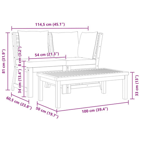 3 Piece Garden Lounge Set with Dark Grey Cushion Solid Acacia Wood