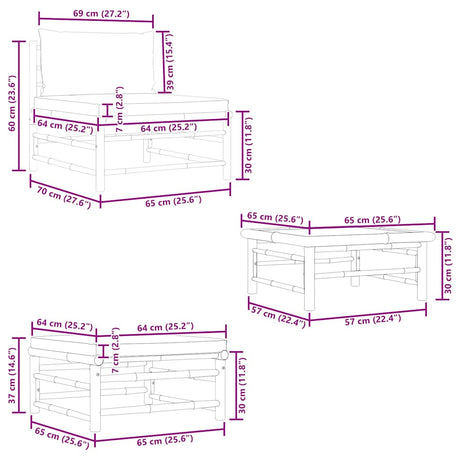 3 Piece Garden Lounge Set with Green Cushions Bamboo