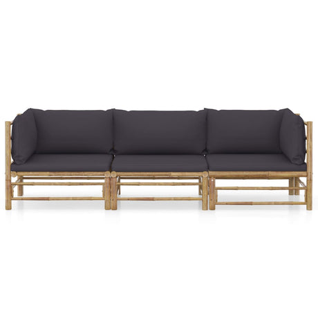 3 Piece Garden Lounge Set with Dark Grey Cushions Bamboo