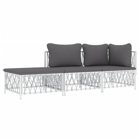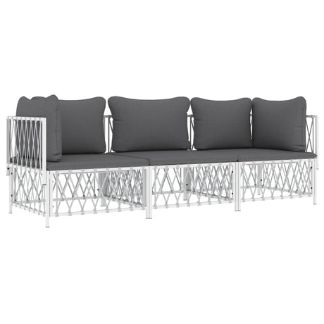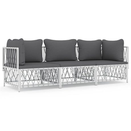 3 Piece Garden Lounge Set with Cushions White Solid Pinewood