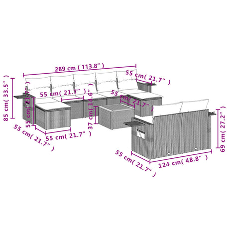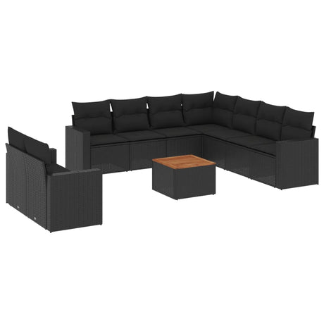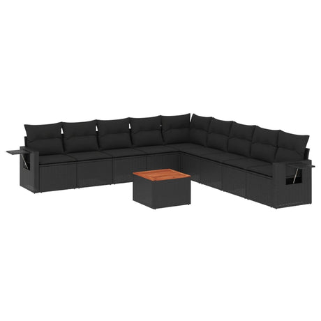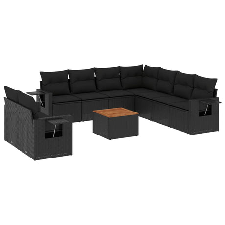 10 Piece Garden Sofa Set with Cushions Black Poly Rattan