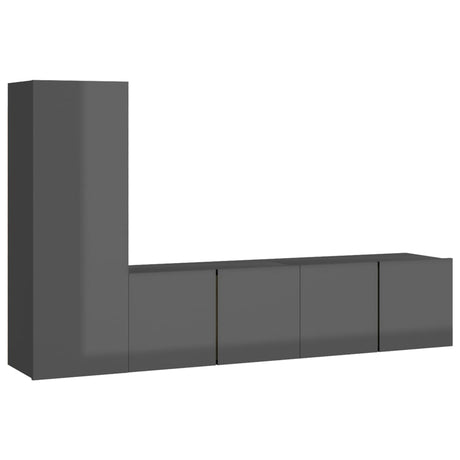 3 Piece TV Cabinet Set High Gloss Grey Engineered Wood