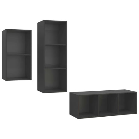 3 Piece TV Cabinet Set Grey Engineered Wood