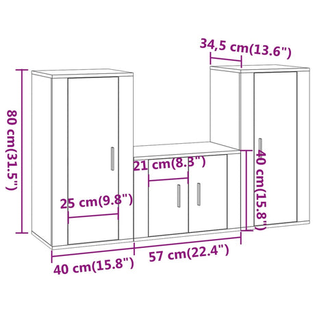 3 Piece TV Cabinet Set Sonoma Oak Engineered Wood