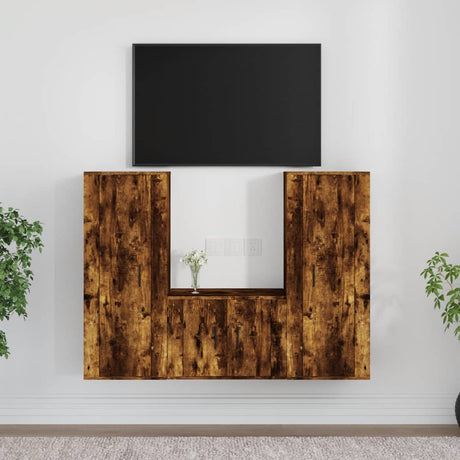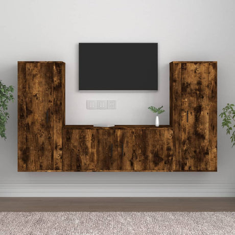 3 Piece TV Cabinet Set Smoked Oak Engineered Wood
