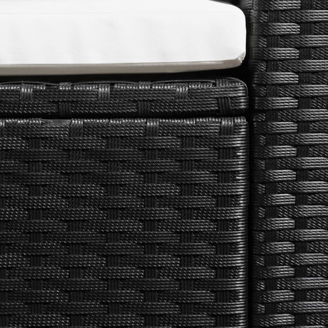 3 Seater Garden Sofa Black Poly Rattan with White Cushions
