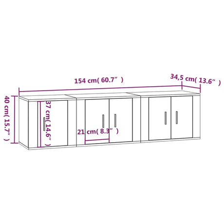 3 Piece TV Cabinet Set White and Sonoma Oak Engineered Wood