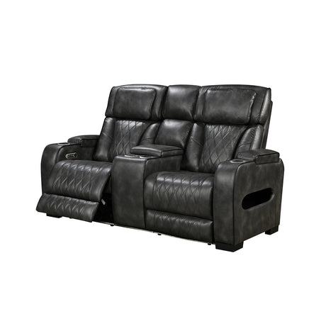 3-2 Seater Electric Air Leather Dark Grey Recliner Set