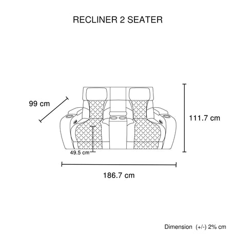 3-2 Seater Seater Finest Black Leatherette Recliner Feature Console LED Light Ultra Cushioned