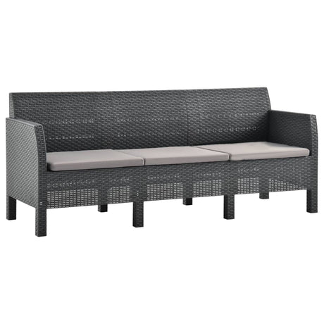 3-Seater Garden Sofa with Cushions Anthracite PP Rattan