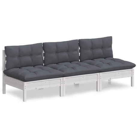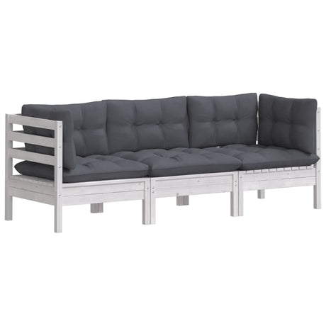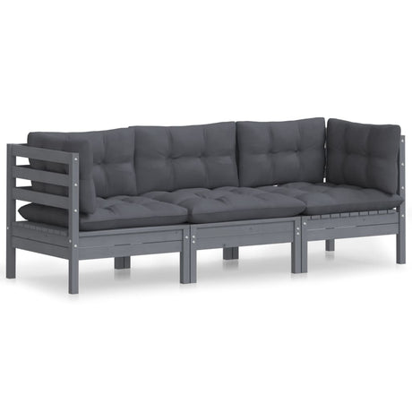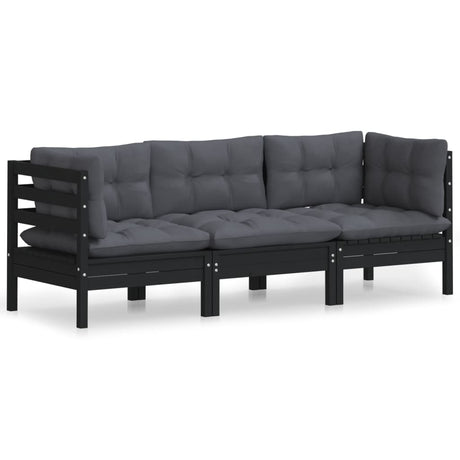 3-Seater Garden Sofa with Anthracite Cushions Solid Pinewood