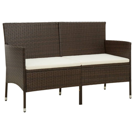 3-Seater Garden Sofa with Cushion Brown Poly Rattan