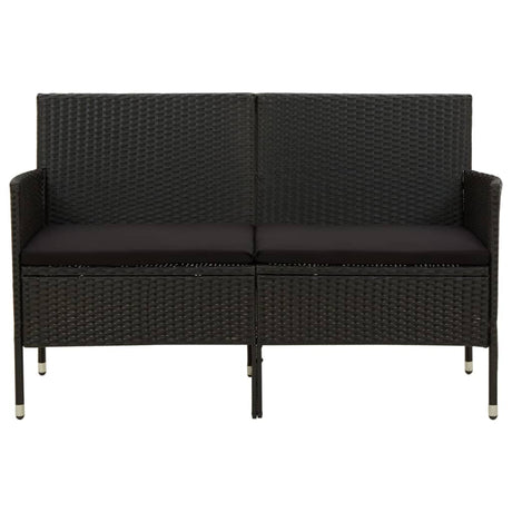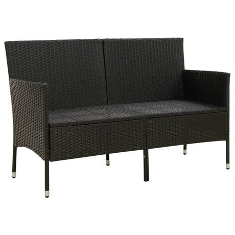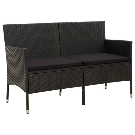 3-Seater Garden Sofa with Cushion Black Poly Rattan