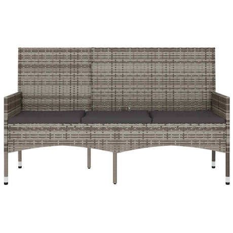 3-Seater Garden Bench with Cushions Grey Poly Rattan