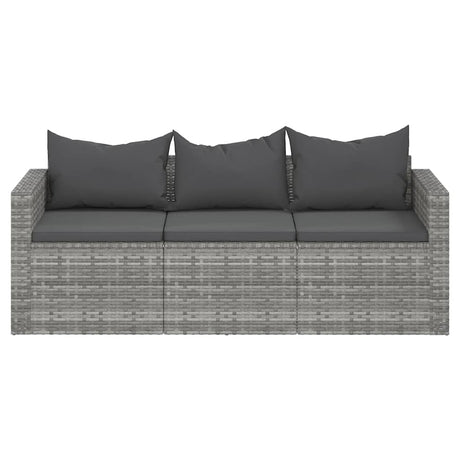 3-Seater Garden Sofa with Cushions Grey Poly Rattan