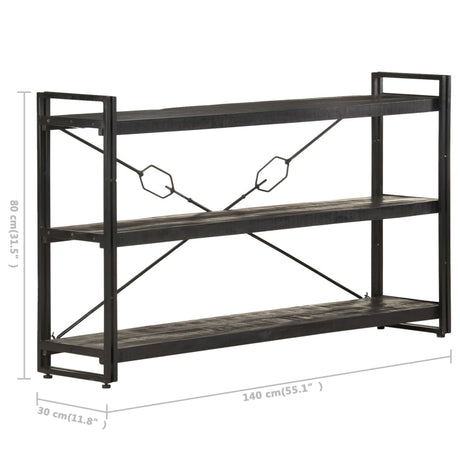 3-Tier Bookcase Black 140x30x80 cm Solid Mango Wood