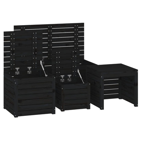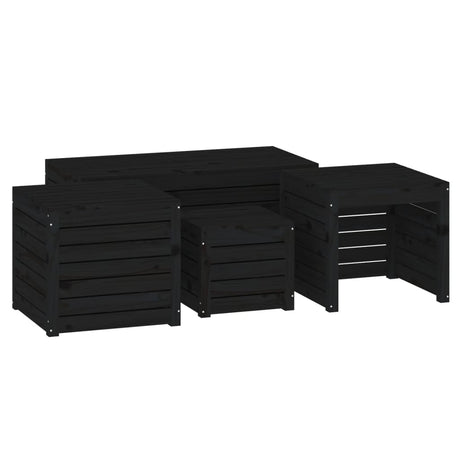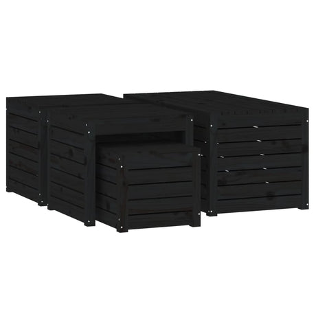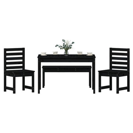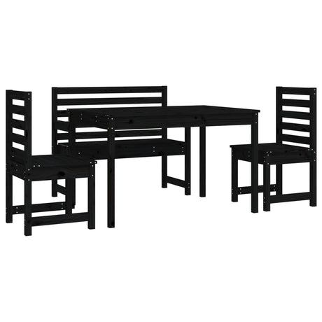 4 Piece Garden Dining Set Black Solid Wood Pine