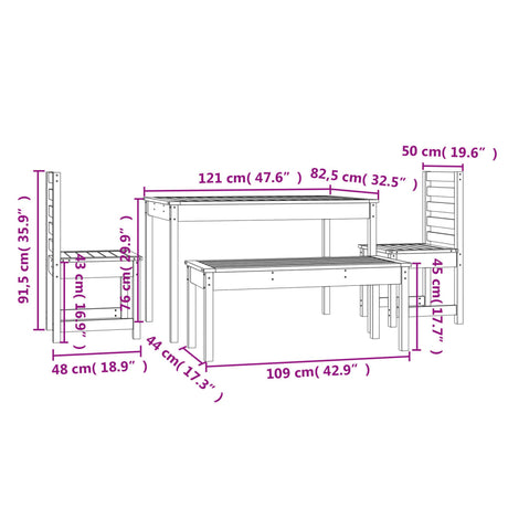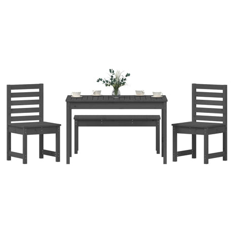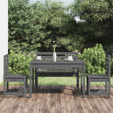 4 Piece Garden Dining Set Grey Solid Wood Pine