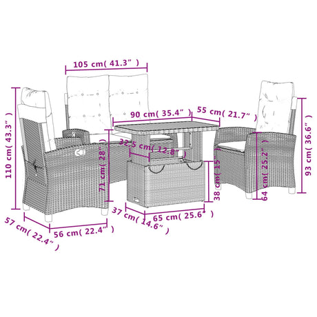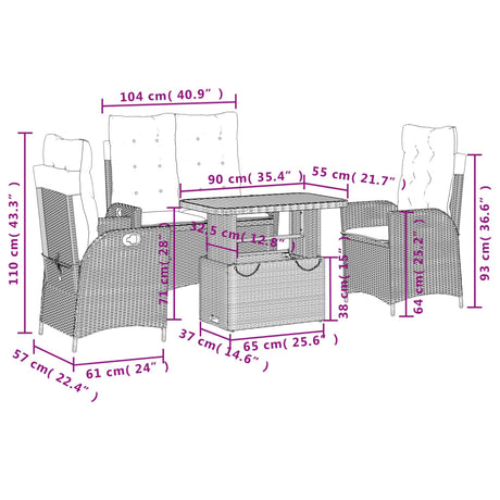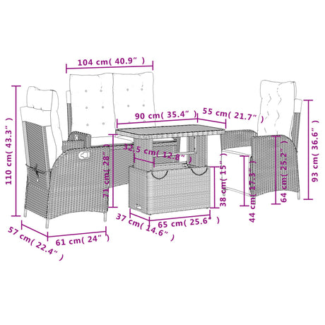 4 Piece Garden Bar Set with Cushions Poly Rattan Grey