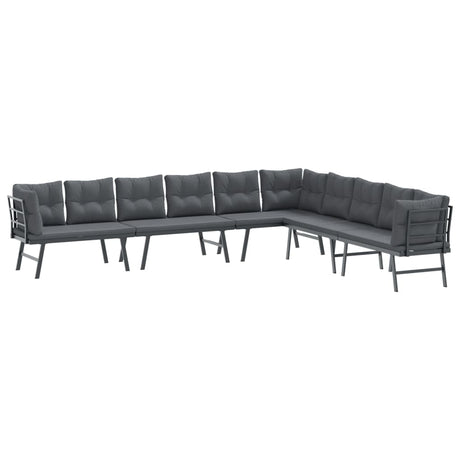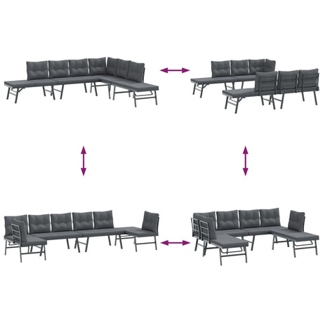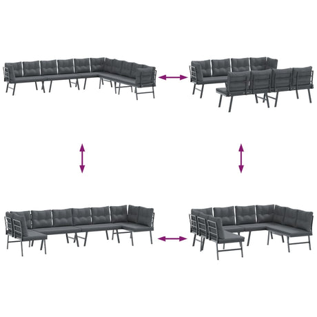 4 Piece Garden Benches with Cushions Black Powder-coated Steel