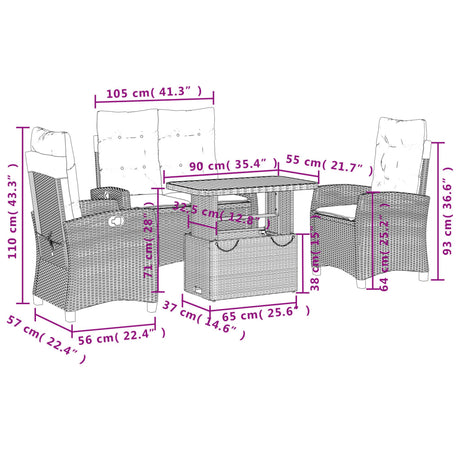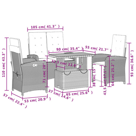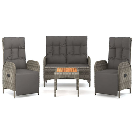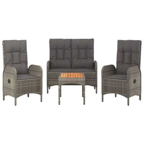 4 Piece Garden Dining Set with Cushions Grey Poly Rattan
