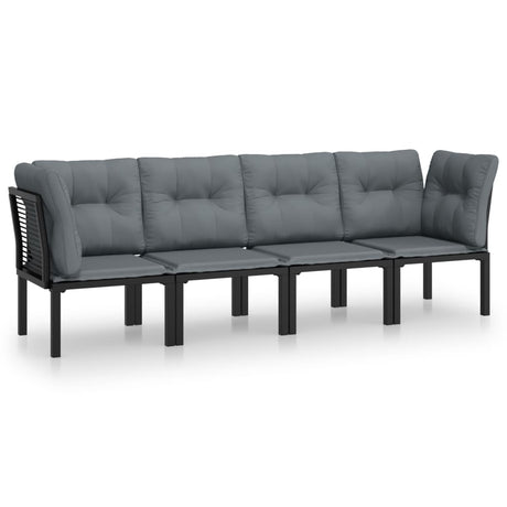 4 Piece Garden Lounge Set Black and Grey Poly Rattan